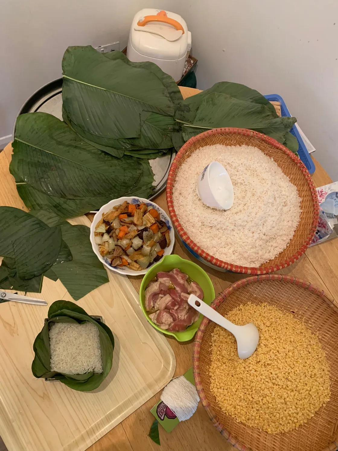 Preparing the steamed rice cake, Banh Chung, 2025.