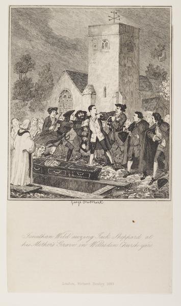 Jack Sheppard: Jonathan Wild seizing Jack Sheppard at his mother's grave in Willesdon churchyard (etching)
