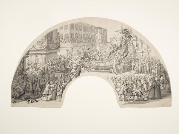 The Chariot of the Virgin Queen, Lord Mayor's Pageant (ink and wash drawing)