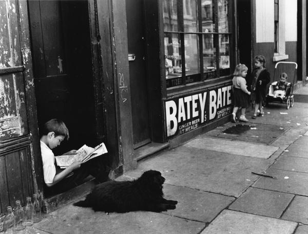 Children and a dog outside a shop on Princedale Road, W11 (silver gelatin print)