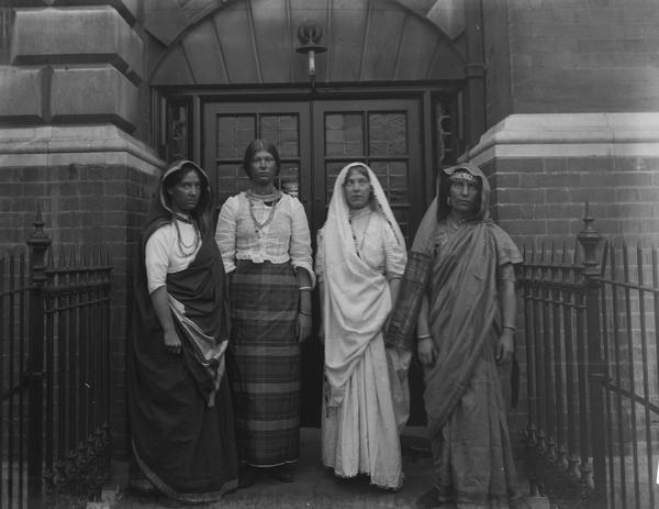 Suffragettes in Indian national dress at the International Suffrage Fair (glass plate)