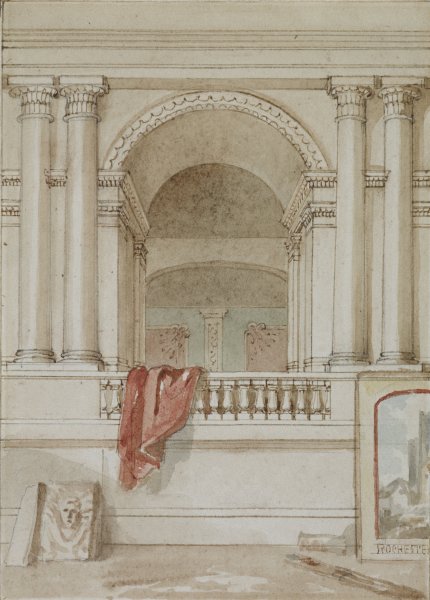 Vauxhall Gardens, shewing the Grand Walk, at the entrance of the Garden, and the Orchestra with the Musick Playing (hand coloured engraving)