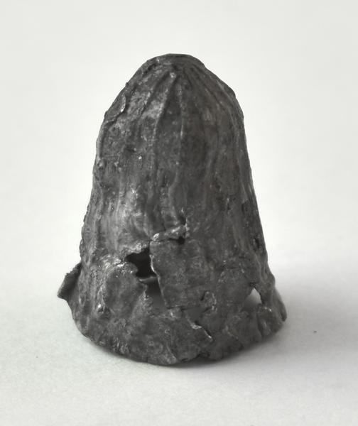 Traveller child peers out through the blinds of a caravan in Bermondsey (silver gelatin print)