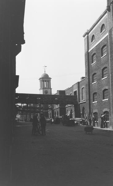 West India Docks: Sugar sacks hung out to dry over Blood Alley in September, 1928. (cellulose acetate)