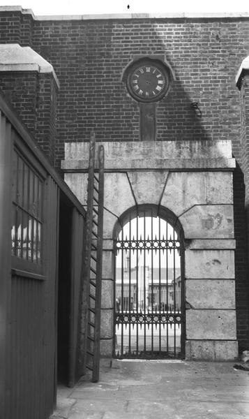 East India Docks: Cases of bananas being discharged on the north quay of the Import Dock around 1929. (negative)
