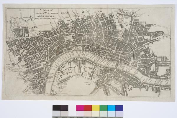 A Map of London, Westminster and Southwark. With y.e New Buildings to y.e Year 1733 (map)