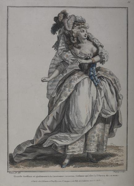 Grande Coeffure et ajustement a la Caravanne (coloured engraving)