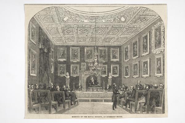 Meeting of the Royal Society, at Somerset House. (engraving)