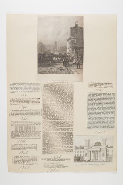 Hanover Chapel, Regent Street; Demolition of Swallow Street; Court of Common Pleas; On Mrs. Porter, of the Lincolnshire House, Beak Street, Regent Street; Fire in Swallow-Street (newspaper cutting & engraving)