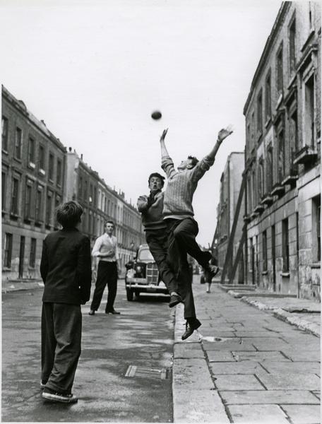 A group of children playing in the street off Harrow Road, Paddington (silver gelatin print)