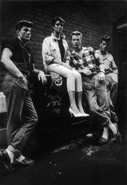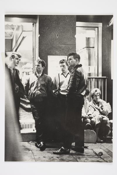 A group of Teddy Boys outside a shop in North Kensington (silver gelatin print)