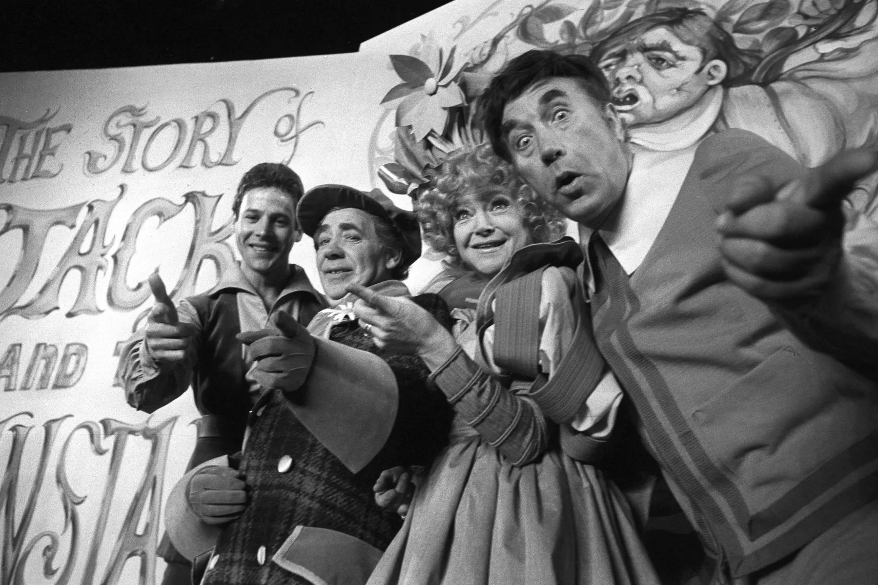 Stars rehearse at the London Palladium for Jack and the Beanstalk, 1973.
