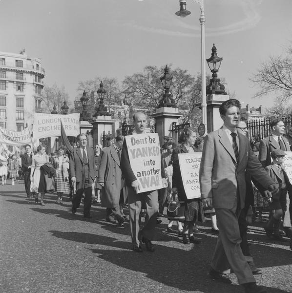 The Cold War tensions between the US, the Soviet Union and their respective allies intensified in the early 1950s. Britain, a close US ally, was heavily involved. For example, it fought in the Korean War (1950–1953), the first major proxy conflict of the Cold War. By 1952, Britain had also successfully tested its own nuclear weapon. Many May Day demonstrations called for peace amid the escalating hostilities.