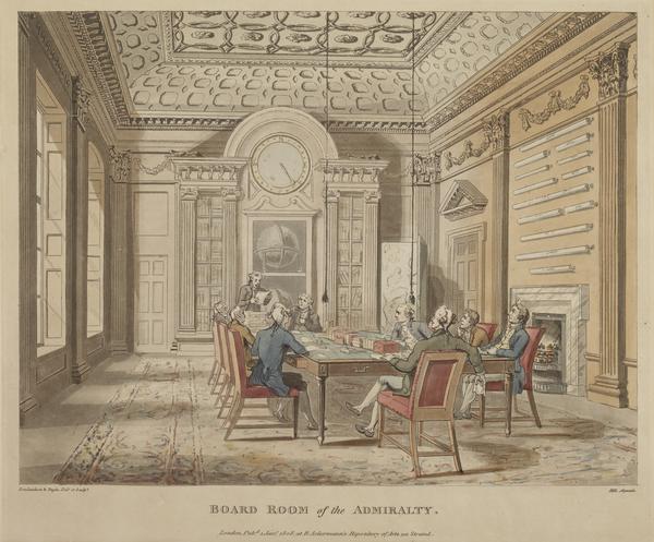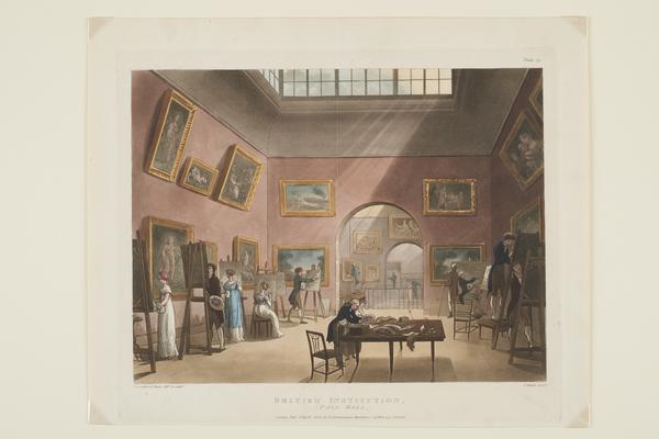 Starting in 1808, the printseller Rudolph Ackermann began publishing his Microcosm of London, a collection of views of London’s most famous buildings. The prints inside combined the work of two famous artists: Augustus Charles Pugin and Thomas Rowlandson.