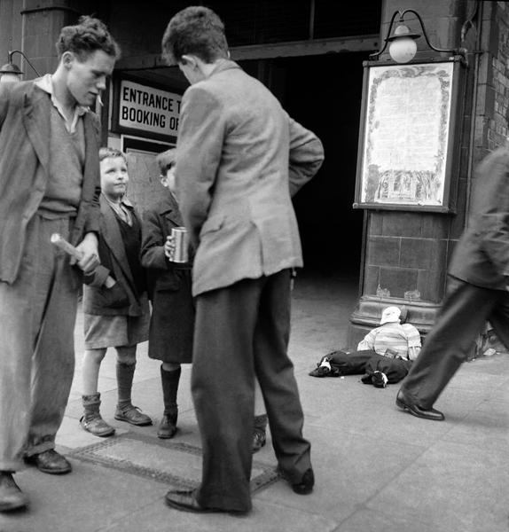 In the lead up to 5 November, children would stuff old clothes or pillows and make a model of Guy Fawkes. They’d take him around the neighbourhood, often in a pram or wheelbarrow, and ask people for money, calling out, “penny for the Guy?” Here, Grant’s captured two young children in the act, with one holding out a tin for collecting coins.