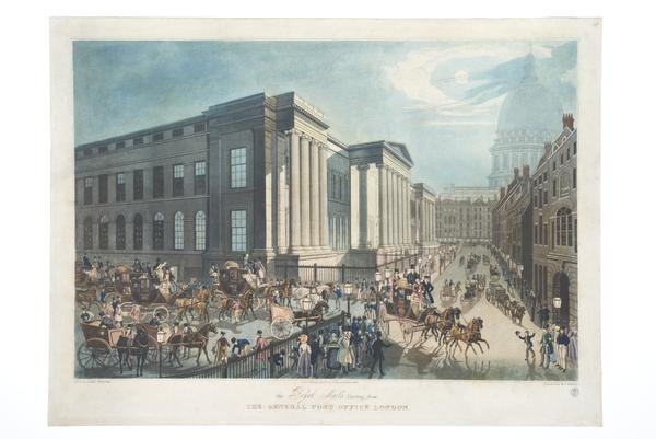 The painting below from our collection is by George Hicks. It captured the chaotic rush of the last Friday post at the General Post Office. This was the last chance of the week to send letters, newspapers or magazines, and drew people to watch the spectacle.. In the middle, you can see people rushing past the crowd of onlookers with their stamped letters and packages.