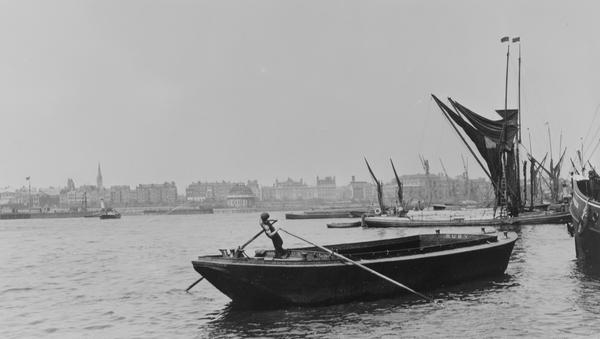 A feature of the working river for centuries, lightermen rowed through the Thames’ crowded waters to unload cargo from ships onto ‘lighters’ and take it to shore. They played a vital role in the efficiency and success of London’s port.