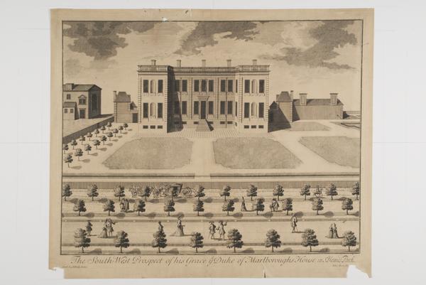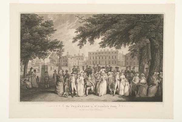 A 1745 print showing visitors walking on The Mall in St James's Park.