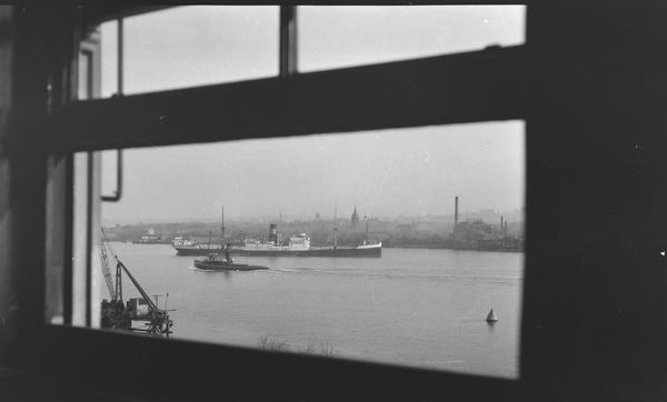 Tilbury Docks: Looking across the river to Gravesend from one of the bedrooms in the Tilbury Hotel on Good Friday, 1929 (cellulose acetate)