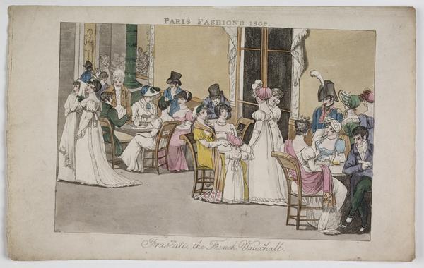 Paris Fashions 1809, Frascati, the French Vauxhall (hand coloured etching)
