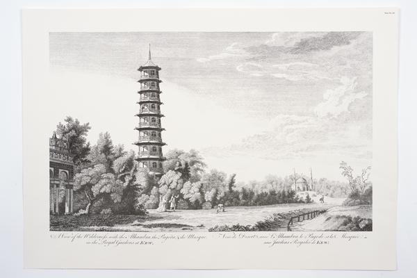 A view of the wilderness with the Alhambra, the Pagoda and the Mosque in the Royal Gardens at Kew (facsimile)