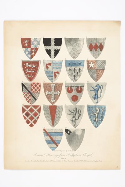 Armorial bearings from St. Stephen's Chapel - plate 2. (coloured aquatint)