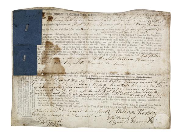 Indenture binding William Harsey to the shipwright Richard Hinds (indenture)