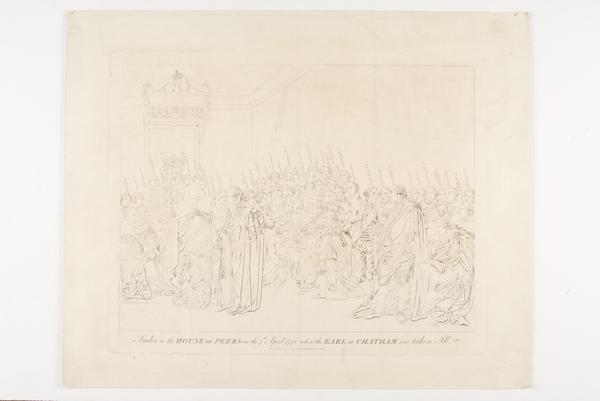 Index to the House of Peers on the 7th April 1778 when the Earl of Chatham was taken ill (engraving)