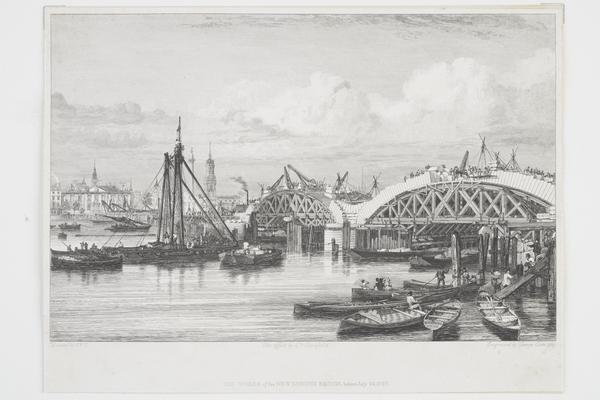 The works of the New London Bridge taken July 28 1827 (engraving)
