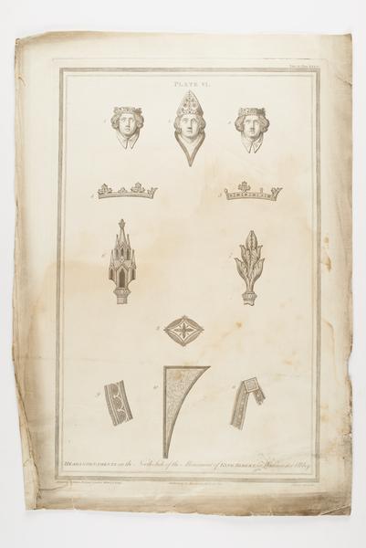 Heads & Ornaments on the North Side of the Monument of King Sebert, in Westminster Abbey (engraving)