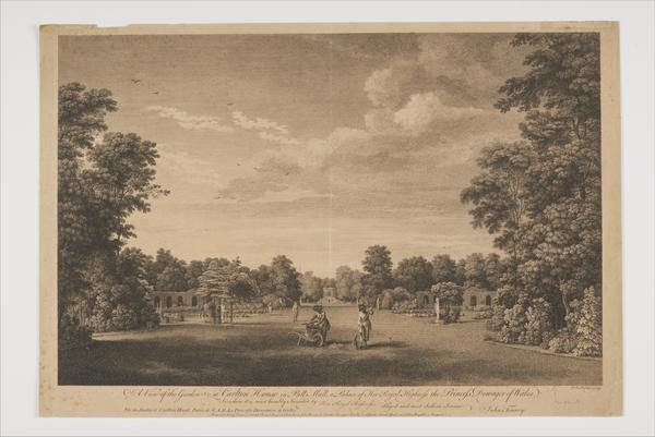 A View of the Gardens at Carlton House in Pall Mall, a Palace of Her Royal Highness the Princess Dowager of Wales. (etching and engraving)