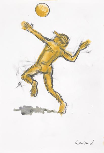 Figure playing Olympic Beach Volleyball (watercolour)