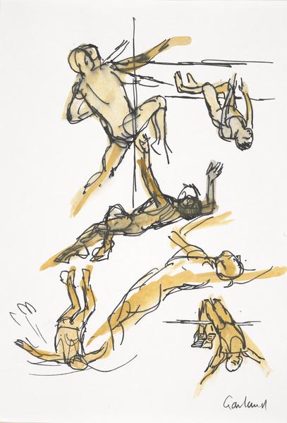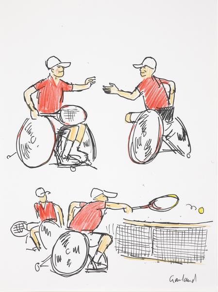 Four Studies of Paralympian Wheelchair Tennis (ink and pencil drawing)