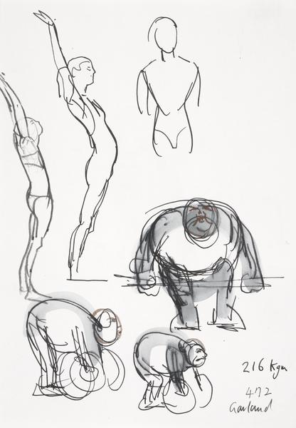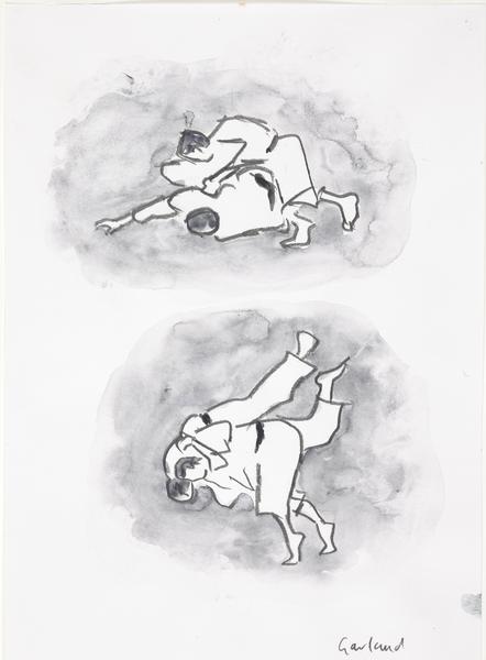 Two Studies of Olympic Judo in the ExCel Arena (watercolour)