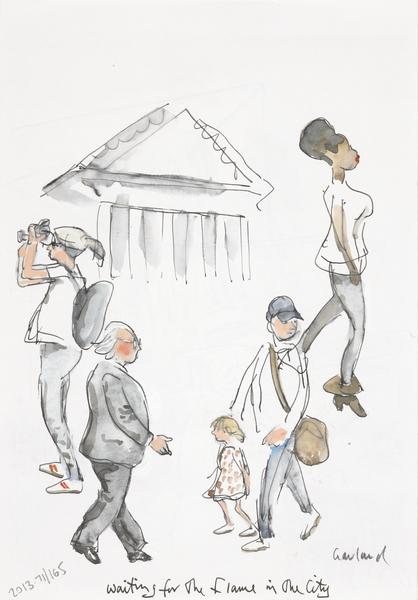 Waiting for the Flame in the City; Two Olympic visitors (drawing)
