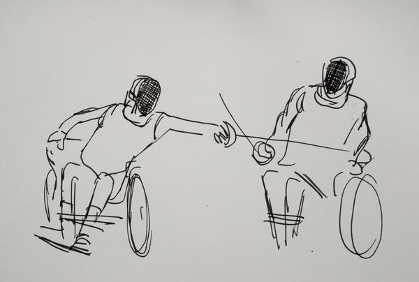 Olympic sketchbook: paralympic fencing (ink drawing)