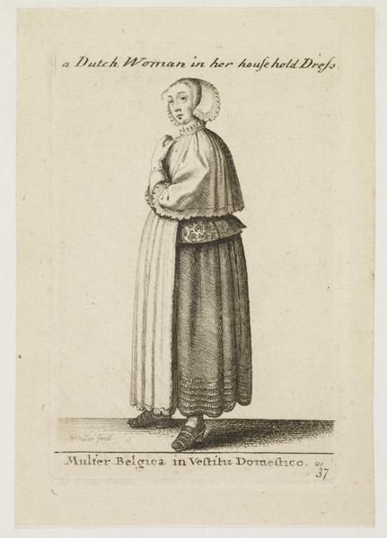 A Dutch Woman in her household Dress Mulier Belgica in Vestitu Domestico (etching)