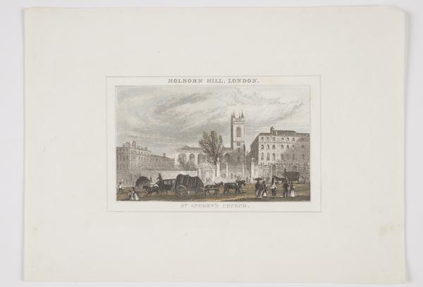 Holborn Hill, London - St Andrews Church. (coloured engraving)