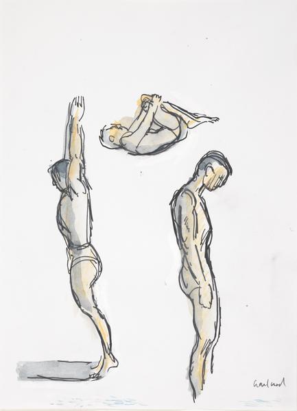 Studies of Olympic Divers (ink and pencil drawing)