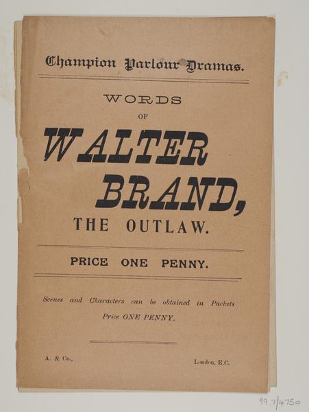 Champion Parlour Dramas Words of Walter Brand, the Outlaw (playbook)