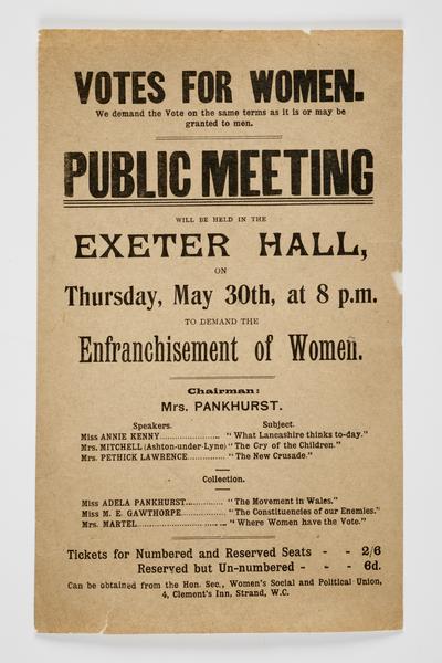 Public Meeting, Exeter Hall. Women's Social and Political Union. (notice)
