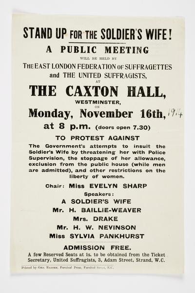 Stand Up for the Soldier's Wife. Protest Meeting. November, 1914. (notice)