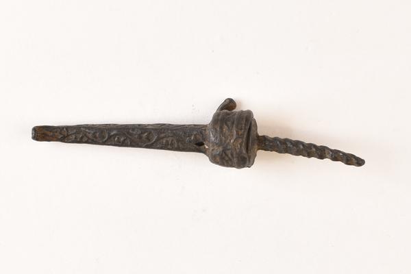 Monk holding staff or cleric with crozier (pilgrim badge)