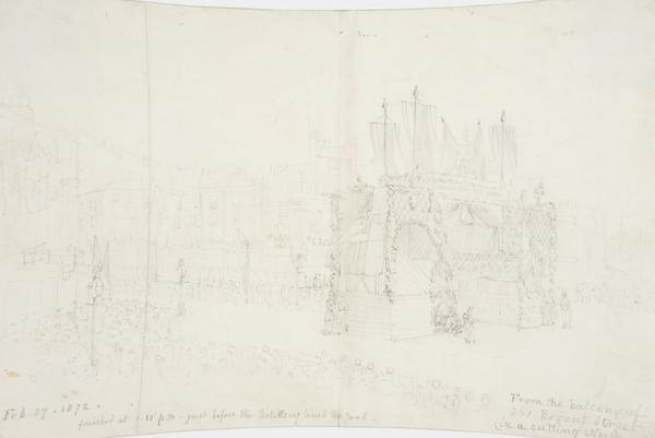 From the balcony of 201 Regent Street (in a cutting North wind!) (pencil drawing)