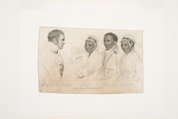 The Rev.d Mr. Kicherer with Mary, John and Martha (stipple engraving)