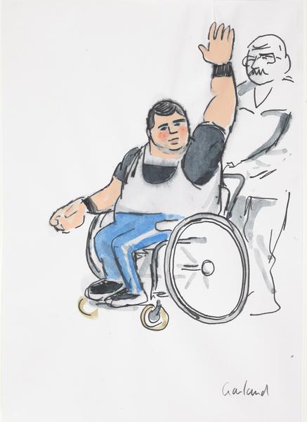 One Paralympian Weighlifter and coach (ink and pencil drawing)