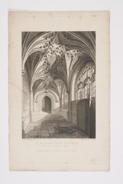 St Sepulchre's Church - Entrance in Skinner Street. (engraving)