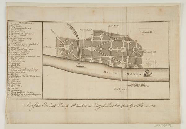 Sir John Evelyn's Plan for Rebuilding the City of London after the Great Fire in 1666 (engraving)