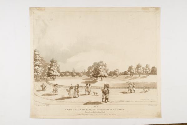 A View in St James's Park of the Horse Guards and St. Pauls taken from Buckingham House (aquatint and engraving)