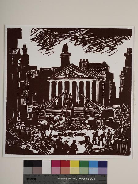 London Blitz, 1941, 1 Royal Exchange, City of London, 1941 (linocut)